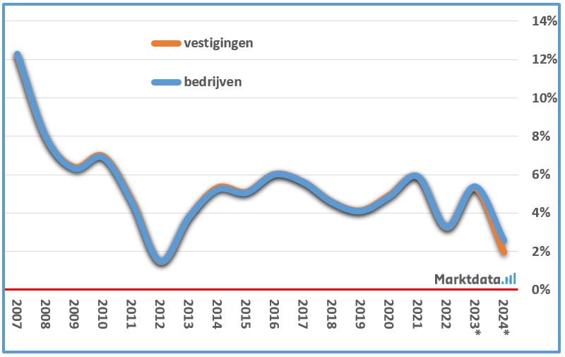 Ontwikkeling aantal bedrijfsvestigingen