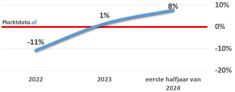 Het zoekvolume nam in het jaar 2022 met 11 procent af, waarna het zoekvolume in het jaar 2023 met één procent toenam. In het eerste halfjaar van 2024 nam het zoekvolume met 8 procent toe ten opzichte van dezelfde periode een jaar eerder. Bij veel productgroepen op het gebied van woninginrichting en woondecoratie zien we een daling van het zoekvolume in het jaar 2022, welke (grotendeels) kan worden toegeschreven aan de corona pandemie. In het jaar 2020 won de aandacht voor het interieur in huis en de woonomgeving sterk aan populariteit. In dat jaar nam ook het zoekvolume naar interieurproducten zeer sterk toe. De daling van het zoekvolume in de periode daarna is een correctie op die extreme groei in het jaar 2020.