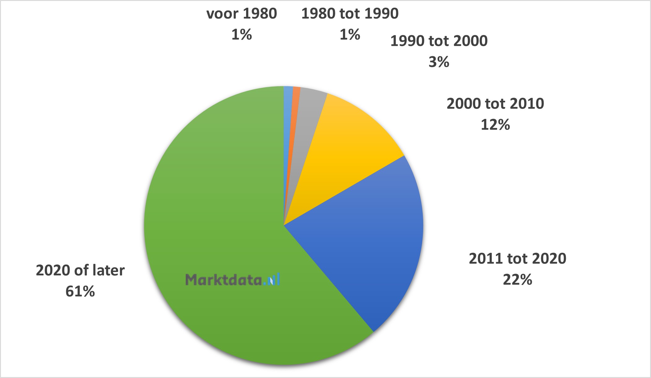 Slechts vijf procent van de dakdekkerbedrijven-vestigingen is vóór het jaar 2000 opgericht. Maar liefst 61 procent van de vestigingen is in het jaar 2020 of recenter opgericht. De dakenbranche kenmerkt zich daarmee door relatief veel jonge bedrijven.