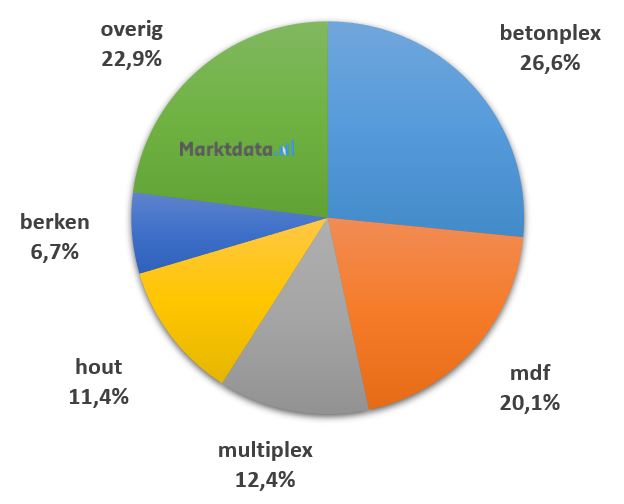 26,6 Procent van het zoekvolume met aanduiding van een soort plaatmateriaal heeft betrekking op een betonplex plaatmateriaal. Op de tweede plaats staat MDF met een aandeel van 20,1 procent in het zoekvolume. De nummer drie is multiplex, welke 12,4 procent van het zoekvolume vertegenwoordigt.
