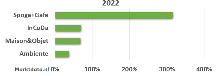 In het jaar 2022 kende Spoga+Gafa een bijzonder sterke groei van het zoekvolume van maar liefst meer dan 300 procent. Daarnaast zagen InCoDa, Maison&Objet en Ambiente het zoekvolume flink toenemen.