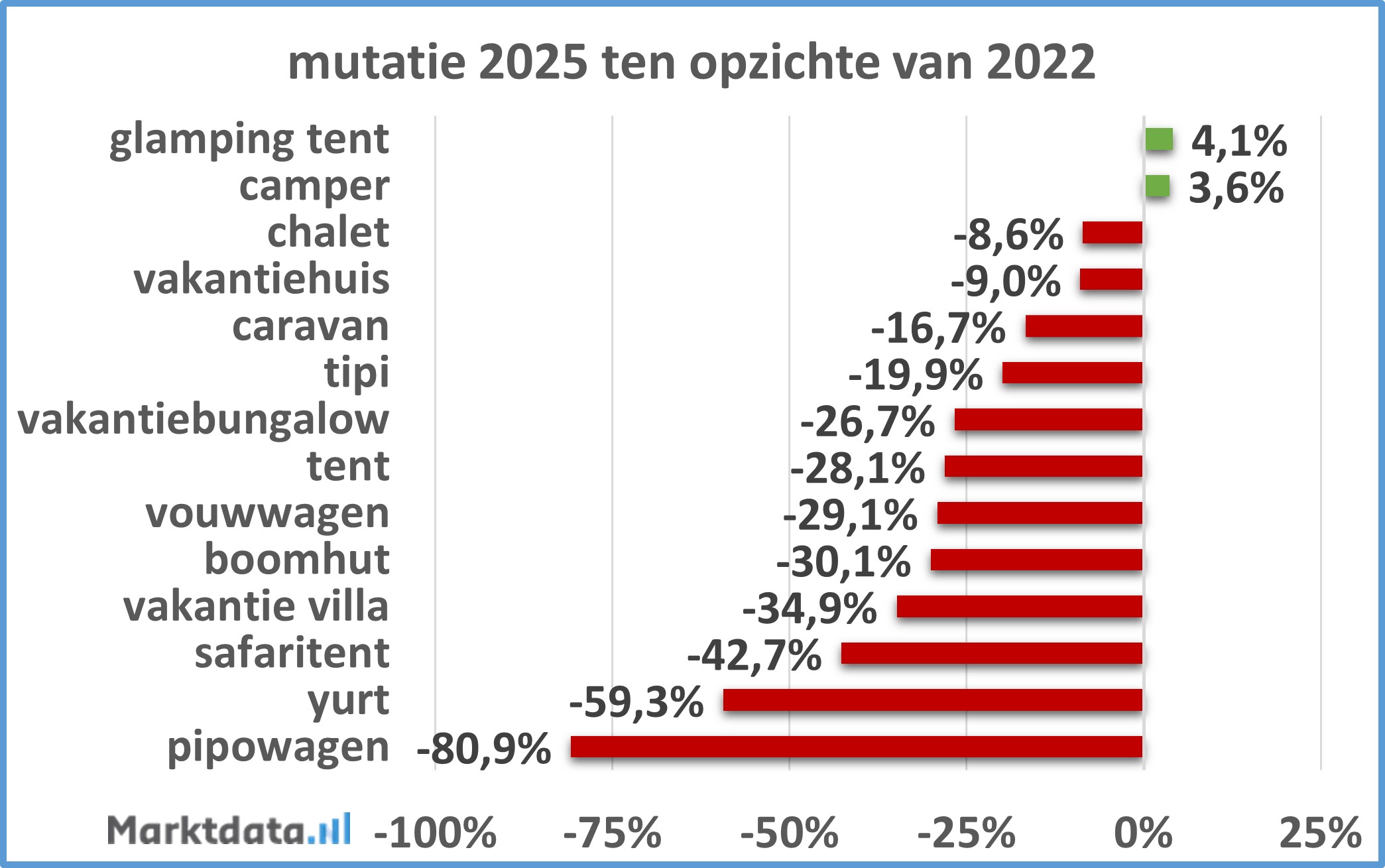 De typen vakantiebeleving met de sterkste groei over de afgelopen paar jaar waren de glamping tent en de camper. Ook voor dit jaar zijn de verwachtingen voor deze typen vakantiebeleving positief.