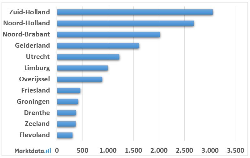 aantal fysiotherapiepraktijken per provincie
