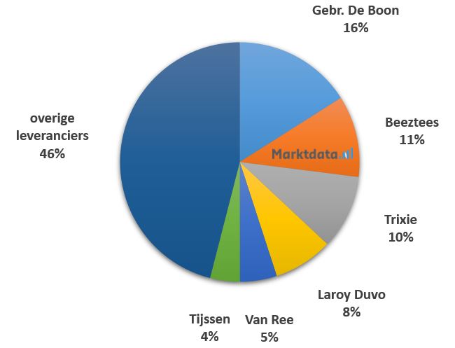 De zes meest genoemde leveranciers van accessoires hebben een gezamenlijk marktaandeel van 54 procent. Gebr. De Boon komt uit op een marktaandeel van 16 procent.