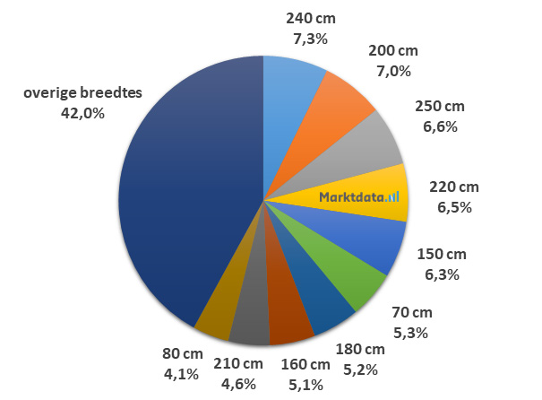 De afgelopen drie jaar groeide het zoekvolume procentueel gezien het sterkst van de breedtemaat 220 cm.