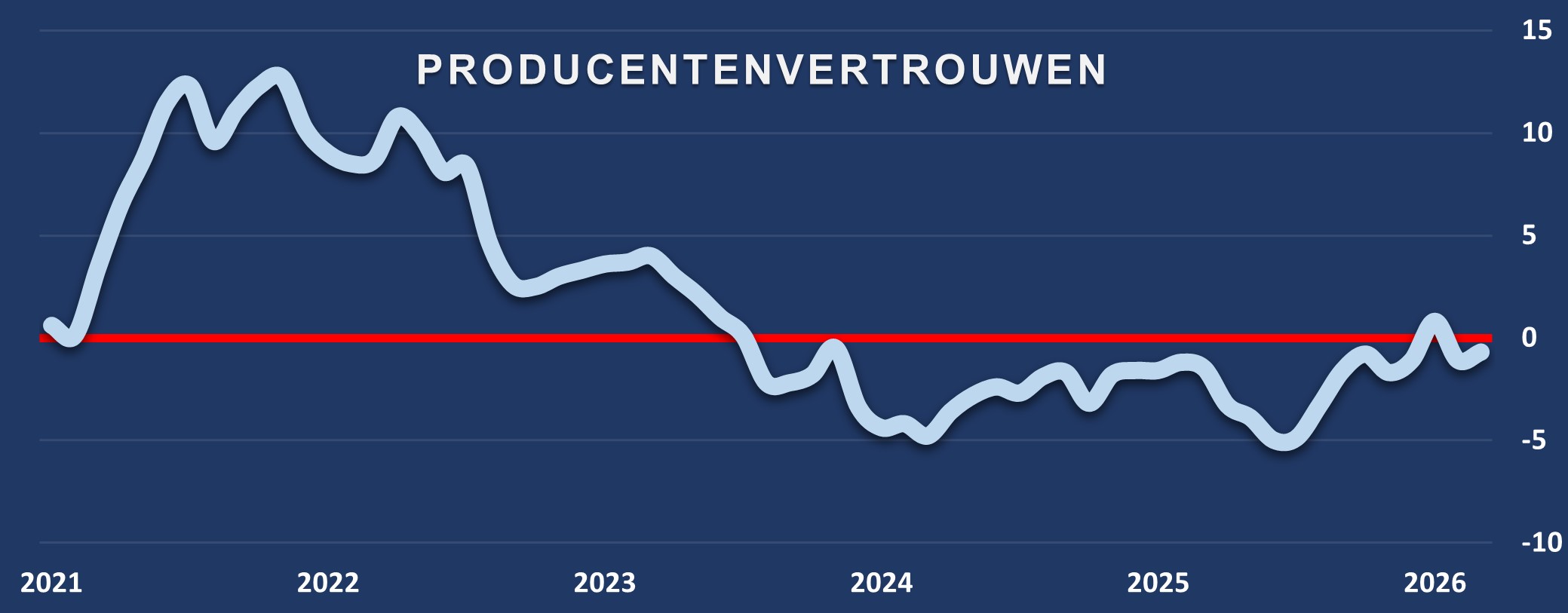 Producenten zijn in maart per saldo iets minder negatief dan een maand eerder. Het producentenvertrouwen industrie gaat van -1,1 in februari naar -0,7 in maart, aldus het Centraal Bureau voor de Statistiek (CBS). Niet alle drie de deelindicatoren laten een verbetering zien. Producenten zijn wat negatiever over de voorraden gereed product en over de orderpositie. Het oordeel over de verwachte bedrijvigheid is wel verbeterd. Deze laatste deelindicator is positief en verbeterd in de afgelopen maand. Het aantal producenten dat verwacht dat hun productie de komende drie maanden zal toenemen is groter dan het aantal dat een afname van de productie voorziet. De andere twee deelindicatoren van het producentenvertrouwen zijn negatief en de afgelopen maand verder gedaald. Het aantal producenten dat de orderpositie groot acht, is kleiner dan het aantal dat de orderportefeuille klein vindt, gelet op de tijd van het jaar. Het aantal producenten dat de voorraad eindproduct als klein beschouwt, is kleiner dan het aantal dat de voorraden groot vindt.